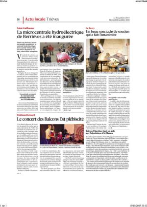Octobre 2025 - Dauphiné Libéré - Concerts dessinés Un Village Pour Mémoire - Trièves et Bourg d'Oisans